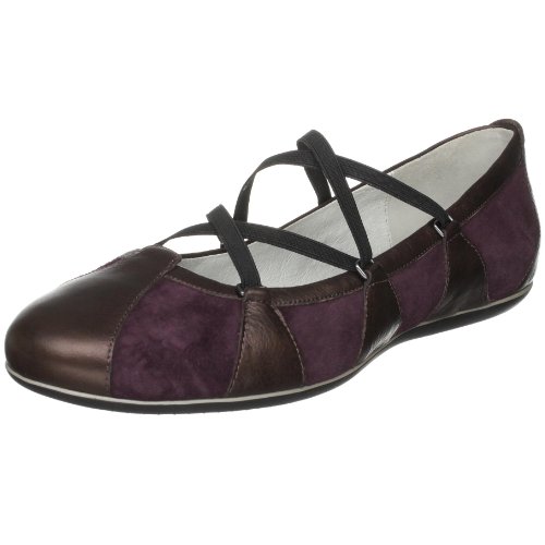 Ballet flat has a soft, supple leather and suede upper with built-in arch support and stretchy elastic straps.
